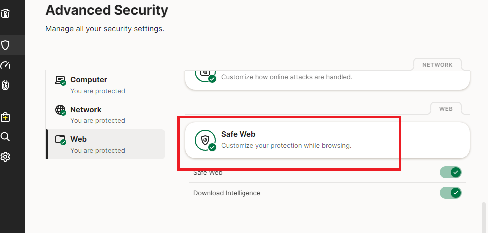 Scroll down to Safe Web and click